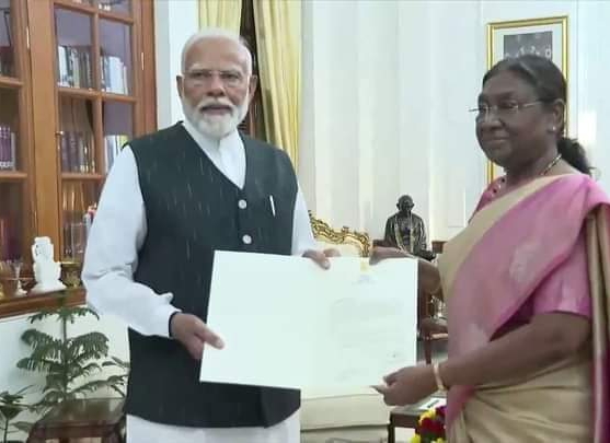 ଦେଶର କାର୍ଯ୍ୟକାରୀ ପ୍ରଧାନମନ୍ତ୍ରୀ ନରେନ୍ଦ୍ର ମୋଦି ଶୁକ୍ରବାର ରାଷ୍ଟ୍ରପତି ଶ୍ରୀମତି ଦ୍ରୌପଦୀ ମୁର୍ମୁଙ୍କୁ ଭେଟି ସରକାର ଗଠନ ପାଇଁ ଦାବି ଉପସ୍ଥାପନ କରିଛନ୍ତି । ରାଷ୍ଟ୍ରପତି ମୋଦିଙ୍କୁ ନୂଆ ସରକାର ଗଠନ ପାଇଁ ଆମନ୍ତ୍ରଣ କରିଛନ୍ତି ।