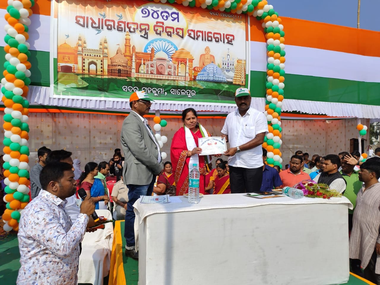 ଜିଲ୍ଲା ପ୍ରଶାସନ ପକ୍ଷରୁ ପ୍ରାୟୋଜିତ ଜନରାଜ୍ୟ ଦିବସ ଉତ୍ସବ ରେ ବିଦ୍ୟାଳୟ ଗଣଶିକ୍ଷା ରାଜସ୍ବ ଓ ବିପର୍ଯ୍ୟୟ ପ୍ରଶମନ ମନ୍ତ୍ରୀ ଶ୍ରୀ ସୁଦାମ ମାଣ୍ଡି ଶ୍ରୀମତୀ ସୁଲିପ୍ତ ଙ୍କୁ ସମ୍ମାନିତ କରିଛନ୍ତି ।