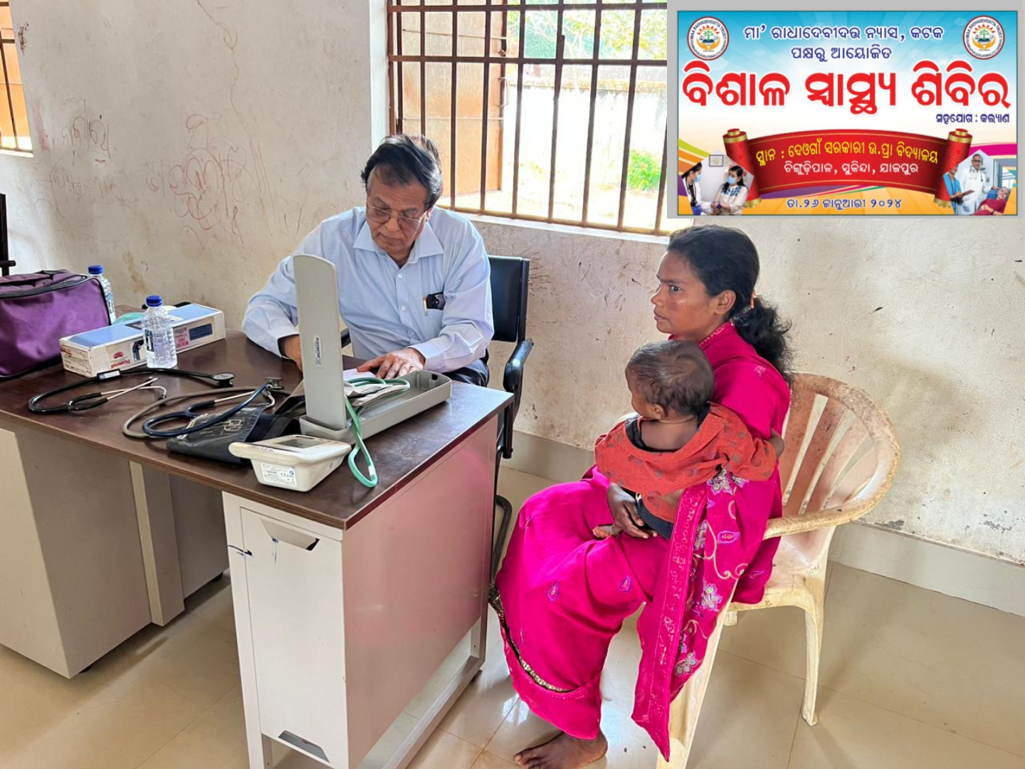 ଅପପୃଷ୍ଟି ପାଇଁ ଶିଶୁ ମୃତ୍ୟୁ ର ଅପବାଦ ମୁଣ୍ଡାଇଥିବା ଯାଜପୁର ନଗଢା ଓ ଚିଙ୍ଗୁଡ଼ିପାଲ ପଞ୍ଚାୟତ ର ଆଖପାଖ ଗାଁ କୁ ନେଇ ଏକ ବିଶାଳ ସ୍ବାସ୍ଥ୍ୟ ସେବା ଶିବିର ମା ରାଧା ଦେବୀ ଦତ୍ତ ନ୍ୟାସ ଓ କଲ୍ୟାଣ ର ମିଳିତ ସହଯୋଗ ଏବଂ ସାହା ର ସଂଯୋଜନାରେ ଦେଓଗାଁ ସ୍ଥିତ ସରକାରୀ ଉପ୍ରା ବିଦ୍ୟାଳୟ ରେ